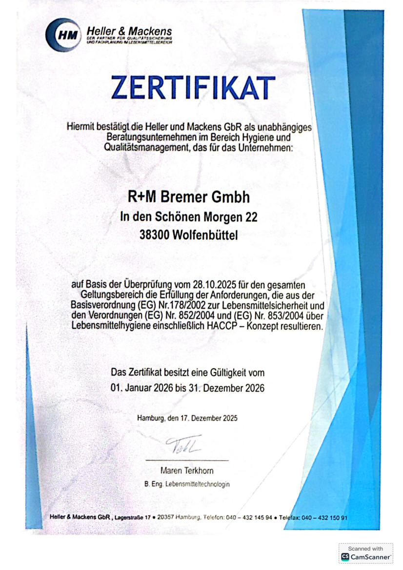 Wir legen großen Wert auf Lebensmittelsicherheit und Lebensmittelhygiene. Aus diesem Grund haben wir uns zertifizieren lassen.